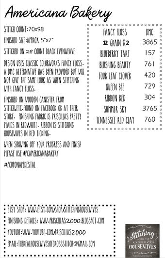 Americana Bakery- Up on a Pedestal Series - Stitching with the Housewives